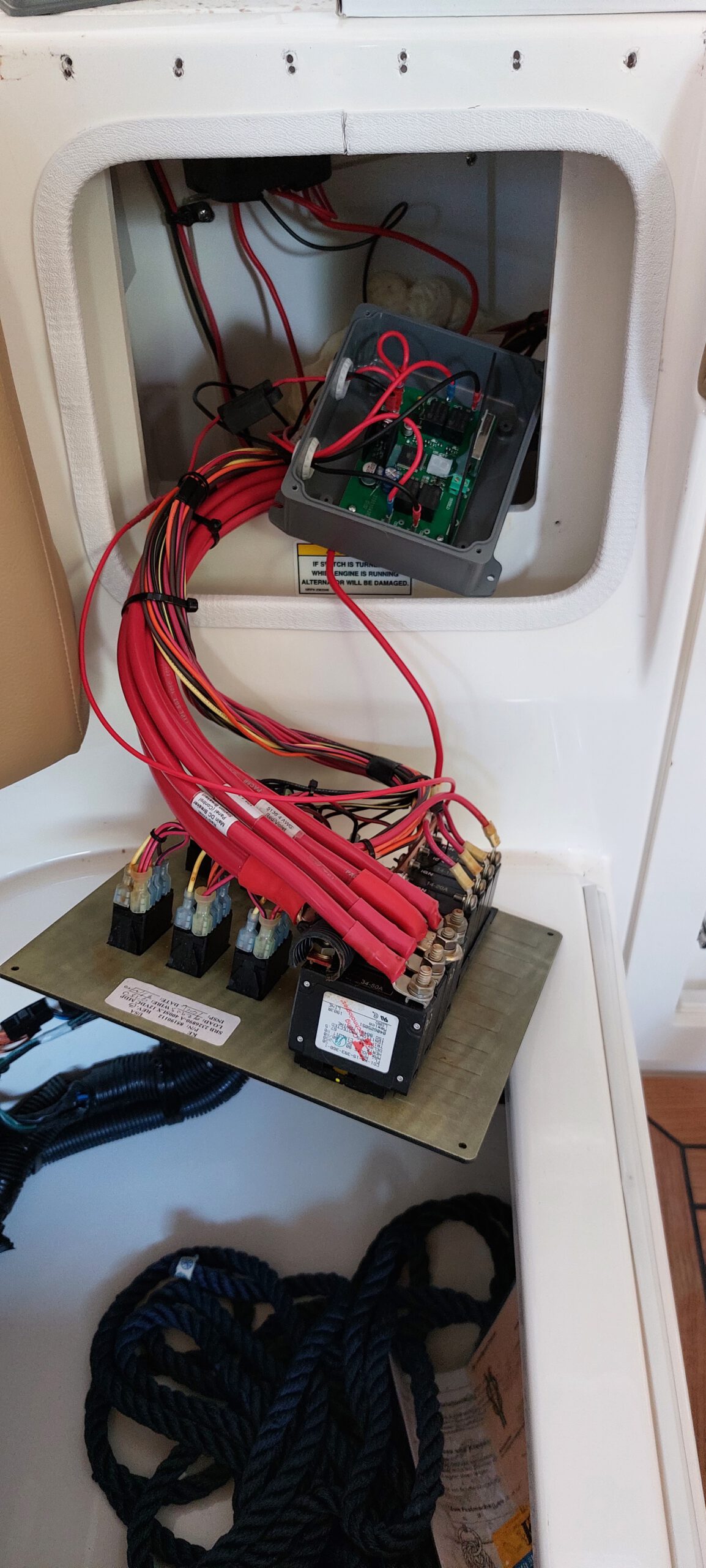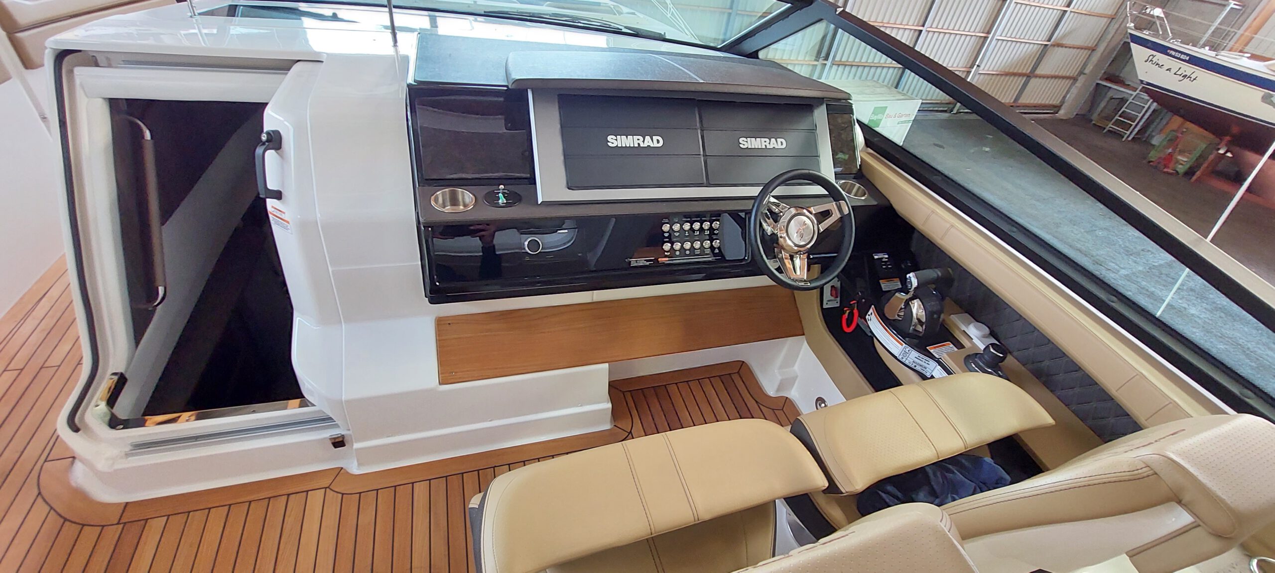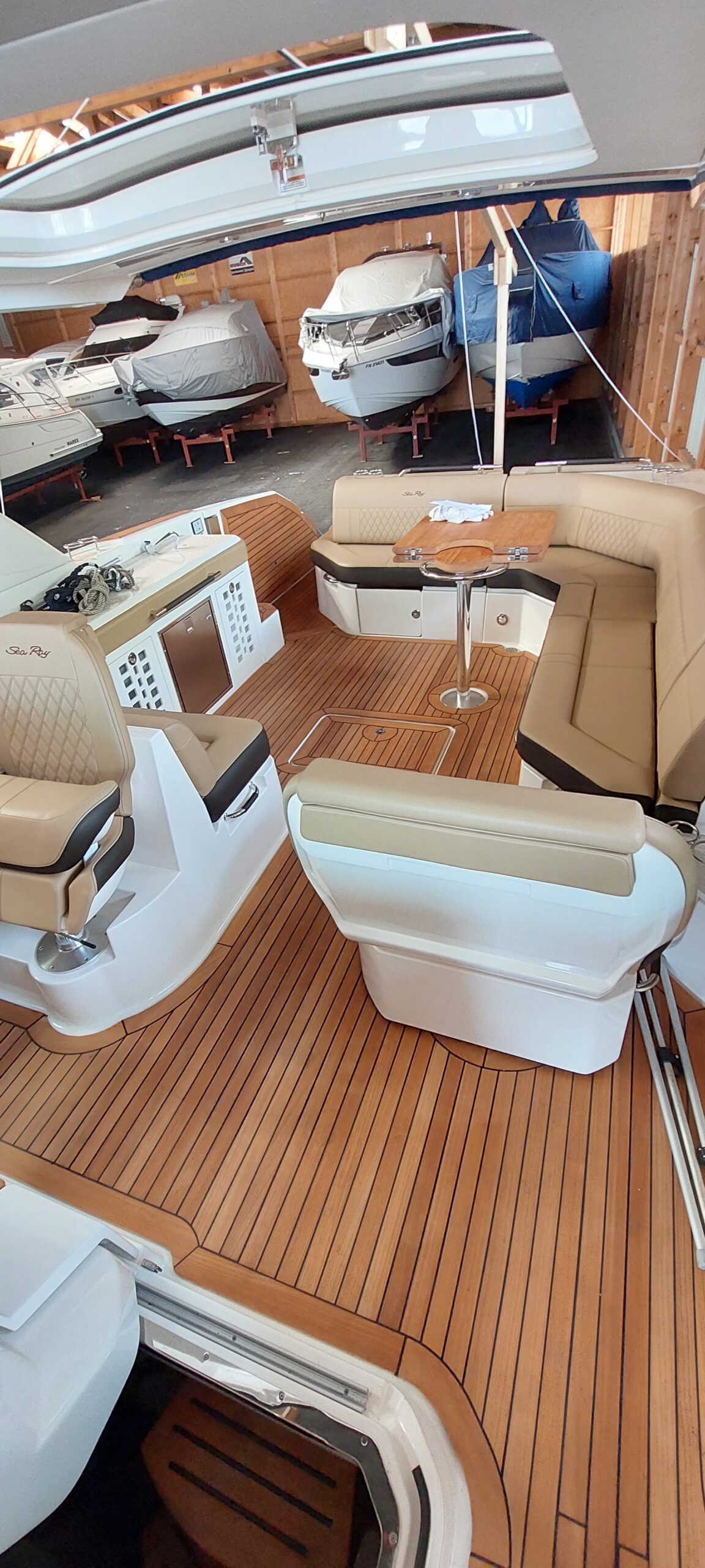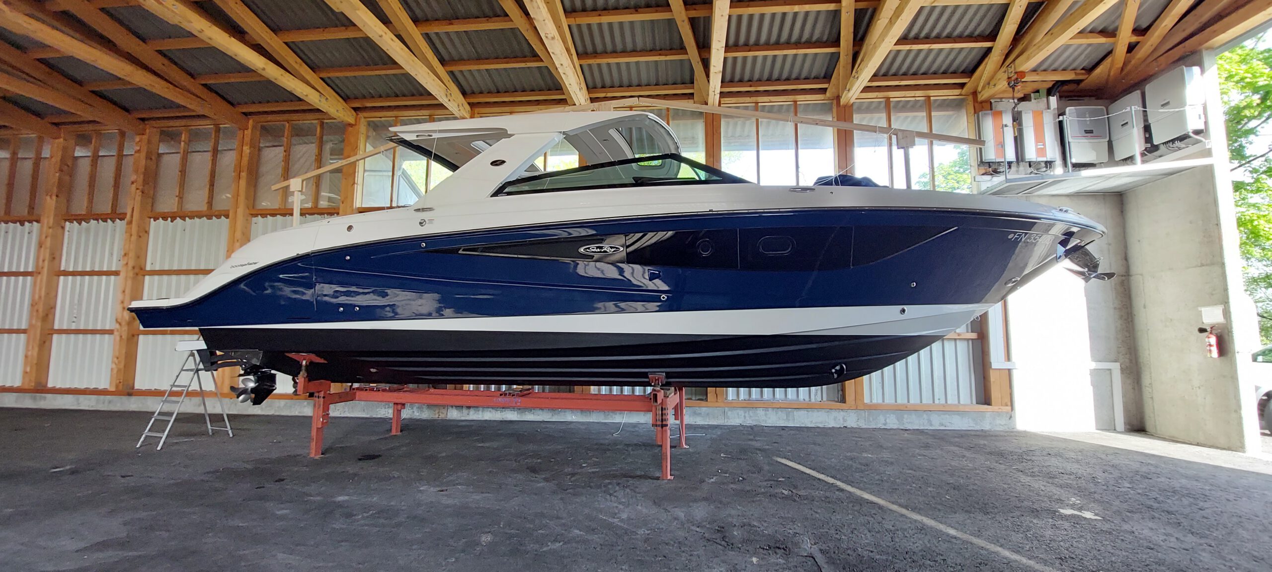 Auf Kundenwunsch wurde bei einer SEARAY 400 SLX ein Bugstrahlruder nachgerüstet. Der Einbau gestaltete sich nicht leicht, für uns aber kein Problem. Verbaut wurde ein Bugstrahlruder von Quick mit 6,5KW, zwei 105Ah Batterien mit extra Ladegerät, Joystick plus Funkfernbedienung auch für die Ankerwinde. Im gleichen Zug wurde das Unterwasserschiff mit aufgefrischt. Wir legen großen Wert darauf unsere Bugstrahlruder sehr stark zu verlaminieren, um die Stabilität im Rumpf zu erhalten. Außerdem empfehlen und verbauen wir immer die größt möglichste Größe und Leistung für das jeweilige Boot, um beim Anlegen die beste Leistung für unsere Kunden zu erzielen.